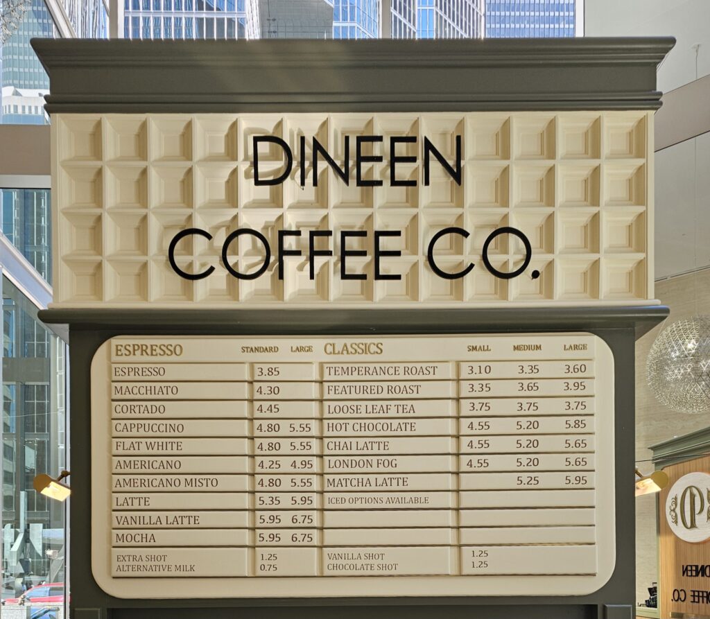 Toronto has very good coffee shops and very good cake/ pastry/ bread shops. In an ideal world your good coffee shop also sells very good cake. On a surface level, as I did not have time to dig deeper into other local areas, I can highly recommend Balzac’s Coffee Roasters and Dineen Coffee Company.