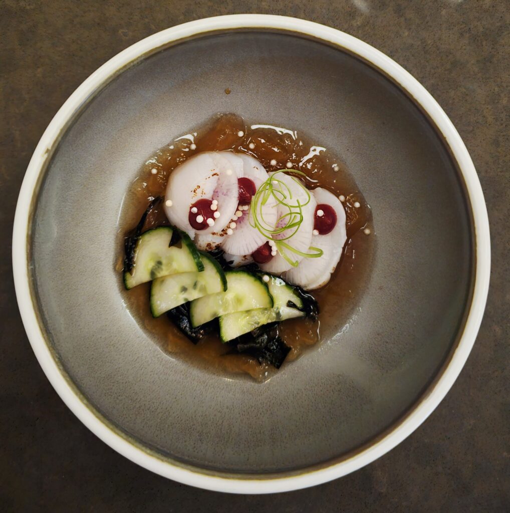 Given that many meals were taken with our extended family, we did not dine out much by ourselves. Richmond Station was a restaurant recommended by St Lawrence Cousin where we had the Chef’s Menu with a (shared) wine pairing. All good and delicious, greatly marred for me by the very loud diner seated near to us. Sometimes people get very excited about what they have seen and done and in their enthusiasm for sharing these experiences they go overboard (and we get over bored). It’s rare not to find a Mr or Ms Motormouth when we dine out and this is part of the risk when not eating in our home environment.