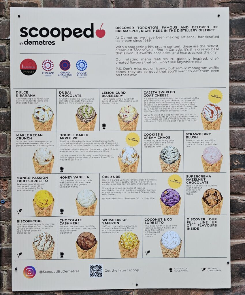 One area I did like was the Distillery District, on account of there being many interesting shops and cafes. I love ice cream but Scooped was not open in the morning so we took ourselves off to Waterworks Food Hall to share two scoops after a ramen lunch. Toronto’s public transport system is marvellous and with the help of Citymapper, we managed to get everywhere without fuss.