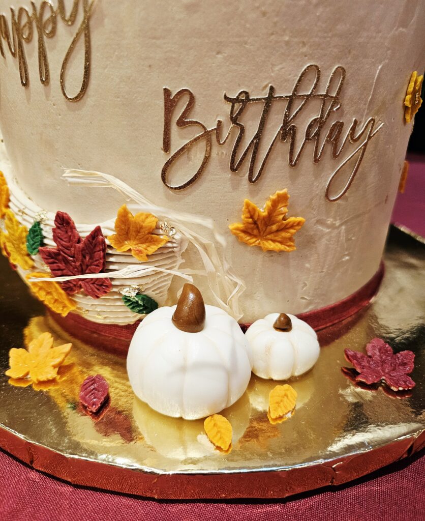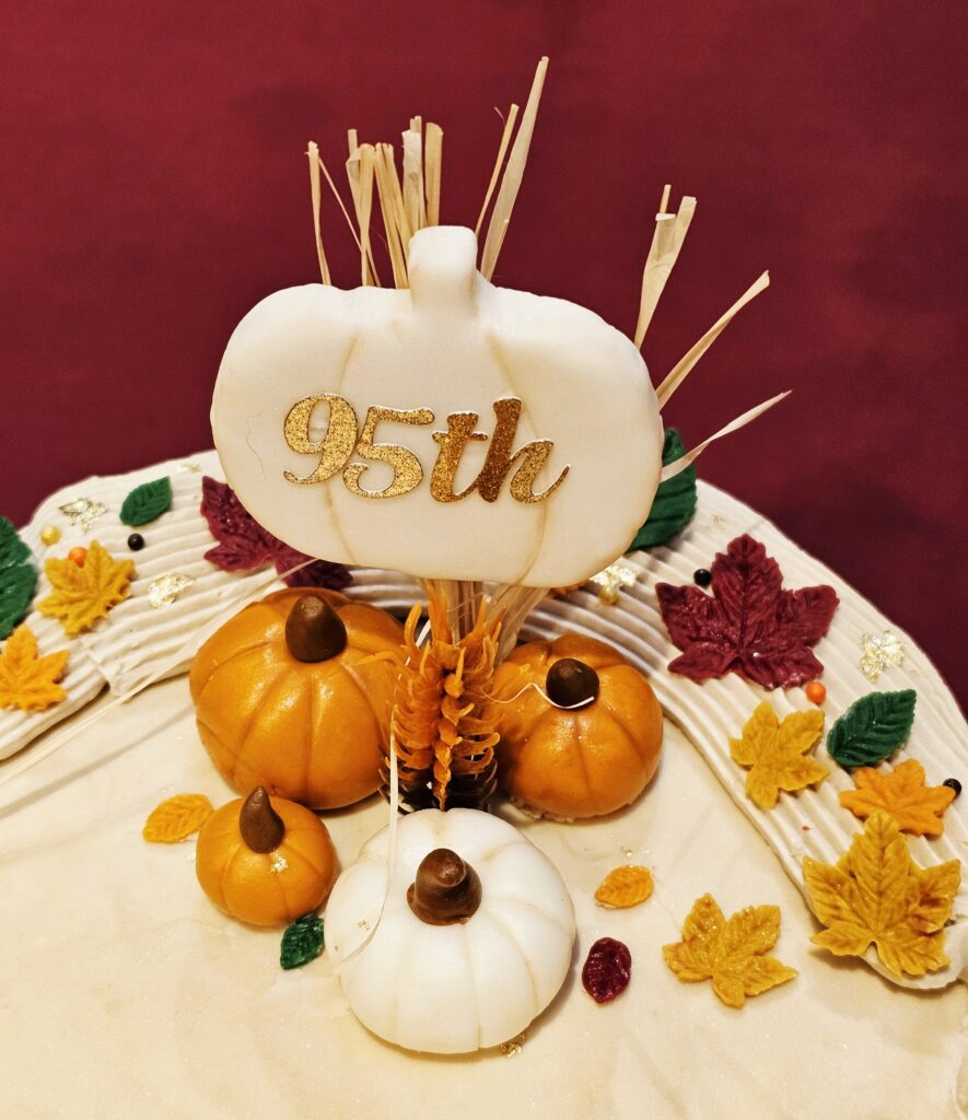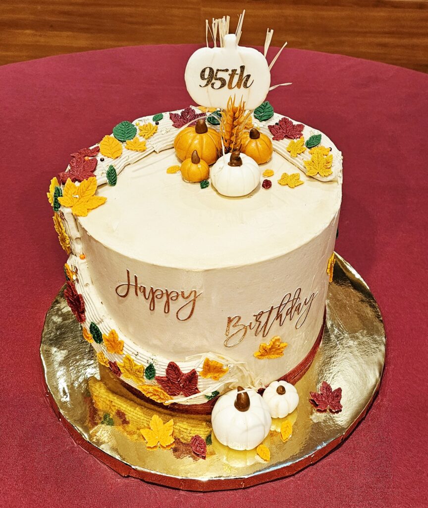 The party of the season was Uncle’s 95th birthday dinner at a Chinese restaurant. We had a sectioned-off area for 50 guests, a grand banquet and a beautiful Autumnal birthday cake. Dining with Uncle, whose has lived most of his life without the intrusion of mobile phones, I did not dare to take pictures of the food we ate together. However I have photos of the birthday menu and the birthday cake (a caramel pumpkin spice latte cake – it was truly wonderful).