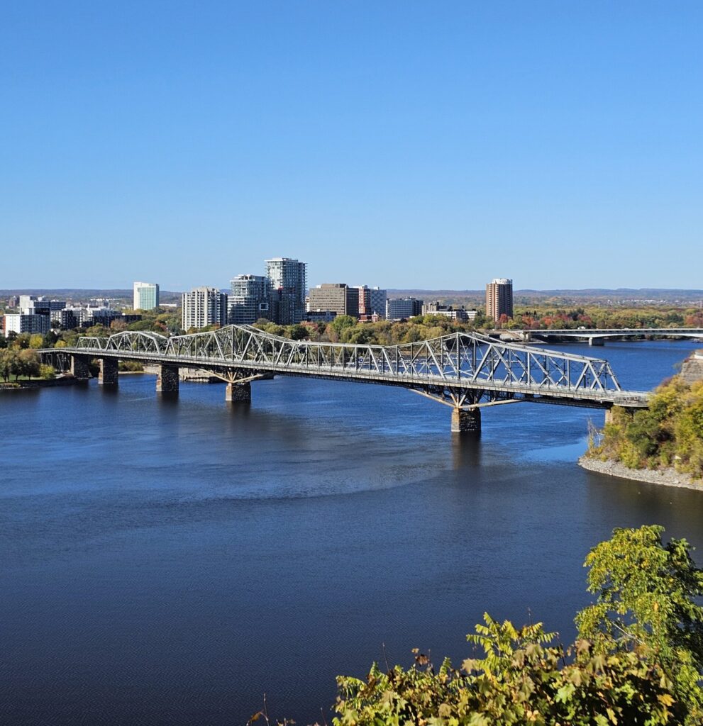 Ottawa is the capital city of Canada, located in English-speaking Ontario. The city of Gatineau is in the neighbouring province of French-speaking Quebec, and it sits at the confluence where the Gatineau River meets the Ottawa River. To get from Ottawa to Gatineau (and vice-versa) we took the Alexandra Bridge, crossing the Ottawa River.
