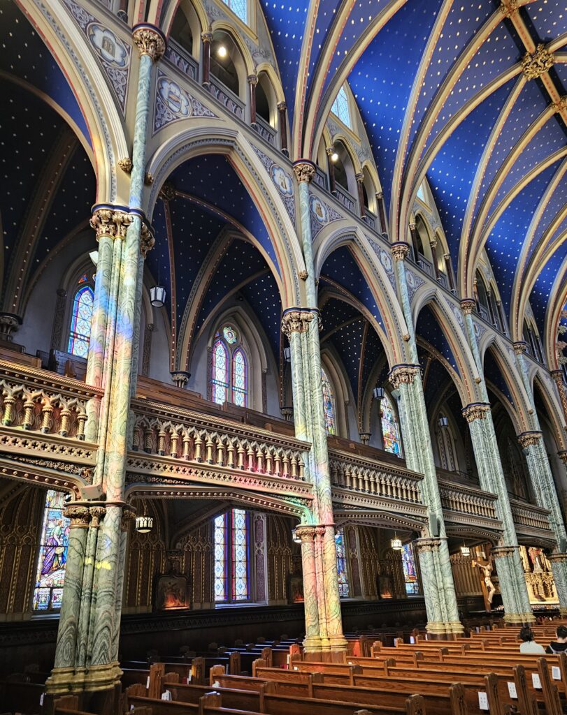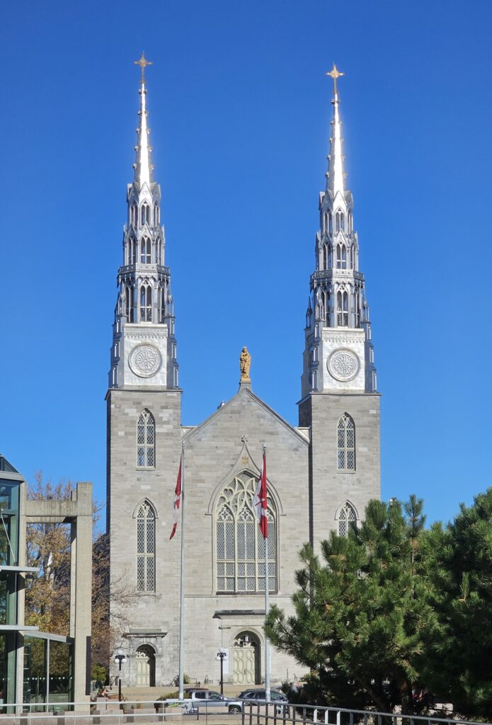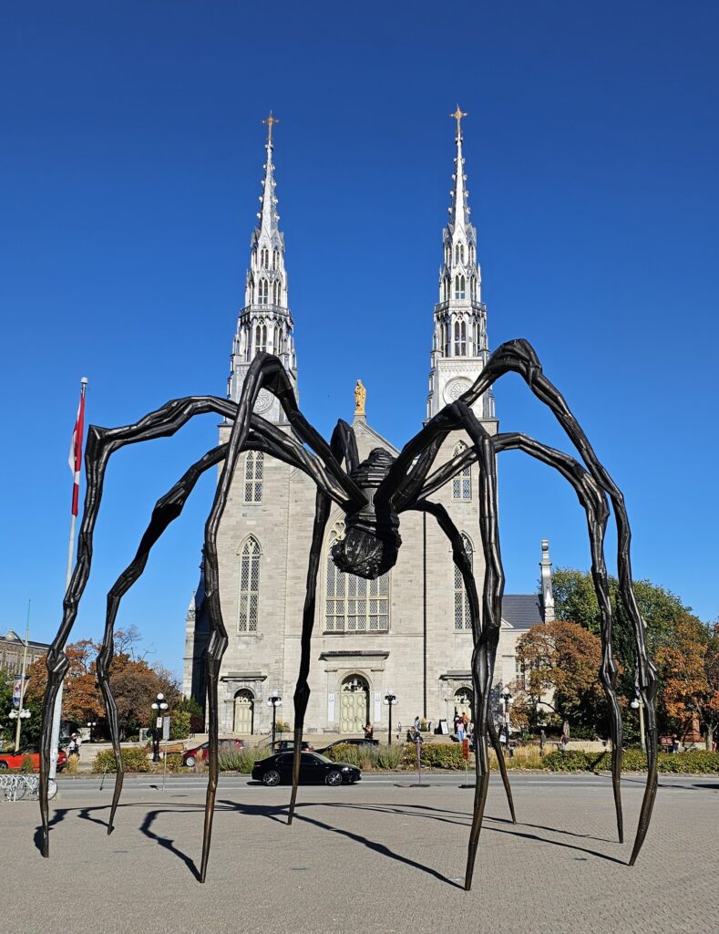 Notre-Dame Cathedral is located next to the National Gallery of Canada, where Maman by Louise Bourgeois welcomes visitors