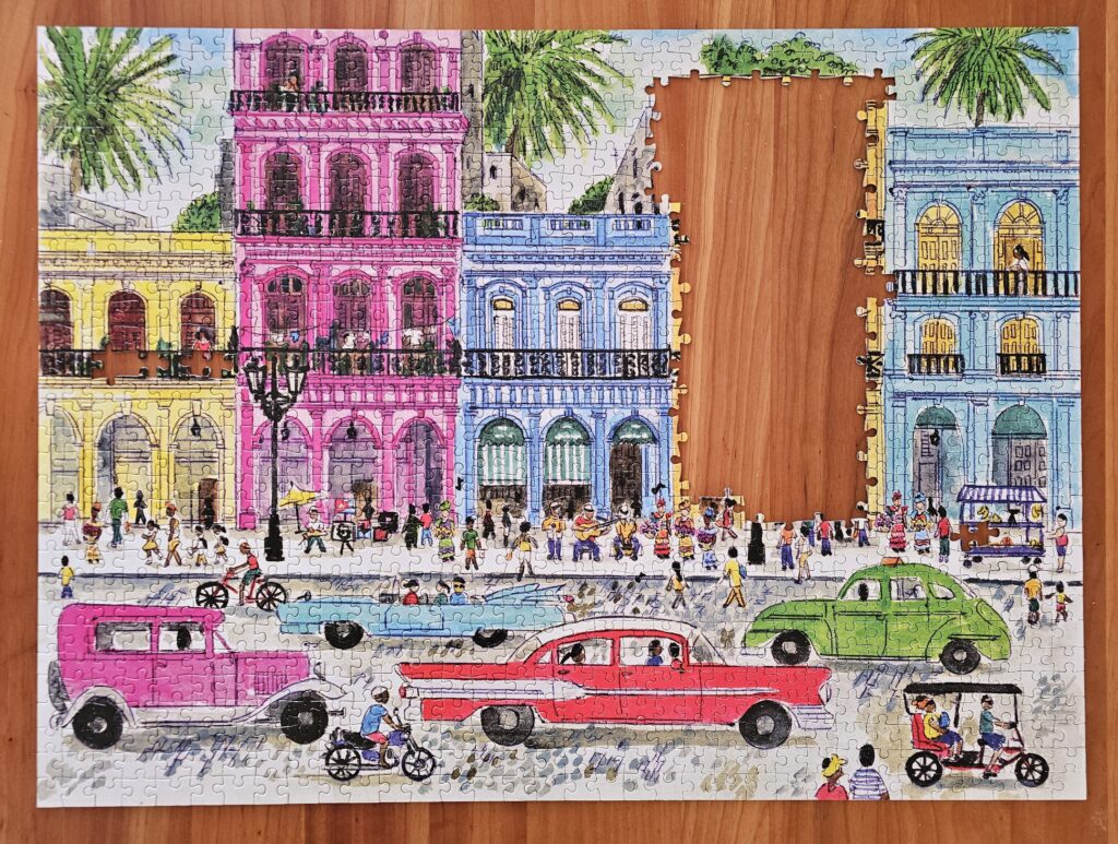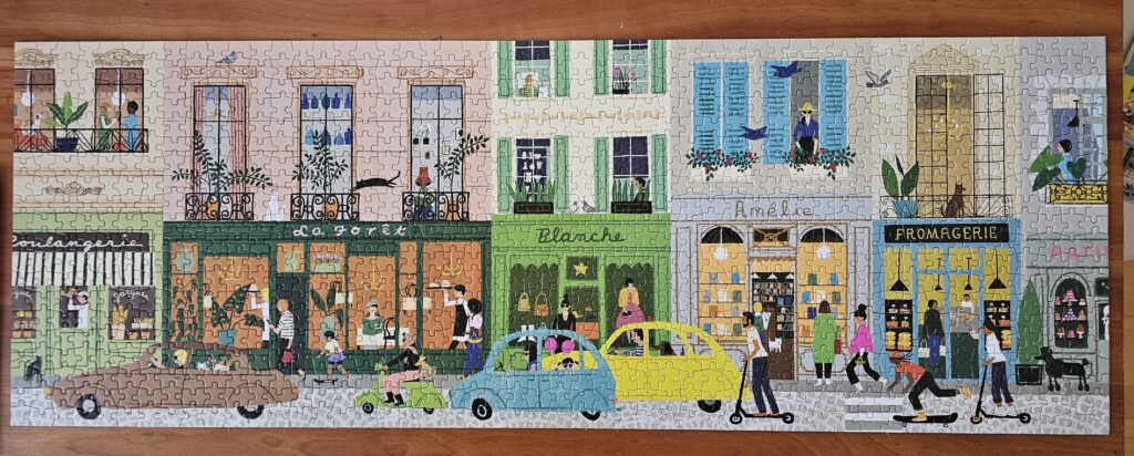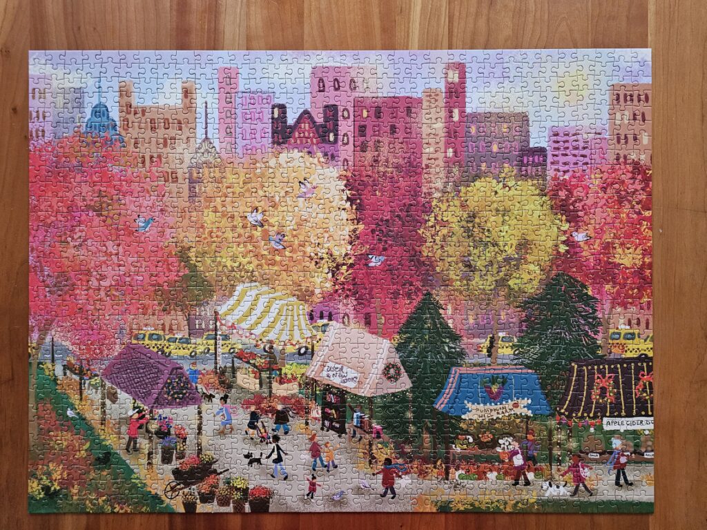 My preferred puzzle maker is Galison. I don’t intend to keep all the puzzles once finished, but to just keep the ones I had most fun making.