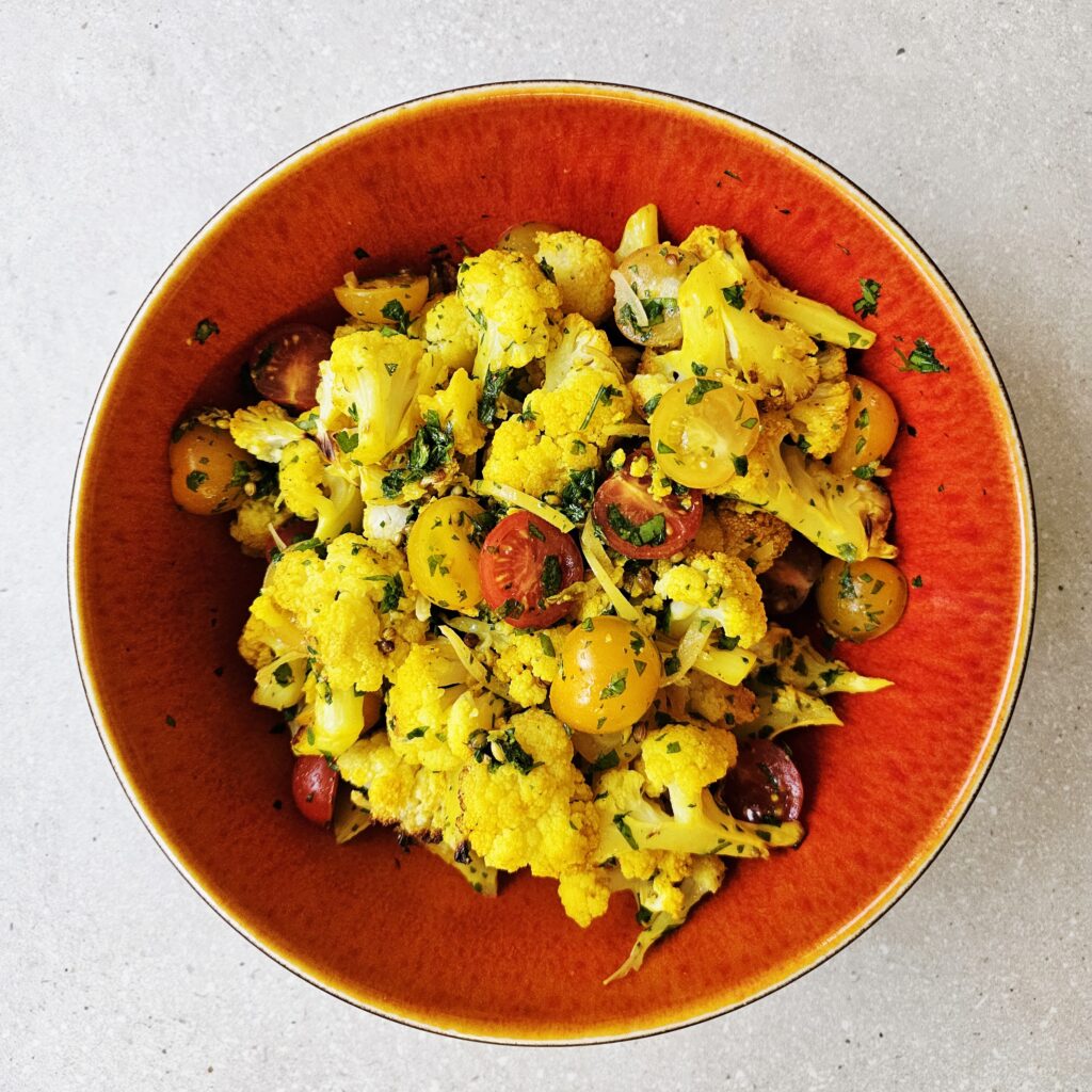 Cauliflower two ways: turmeric roasted and with cheese sauce