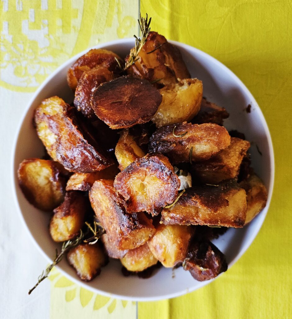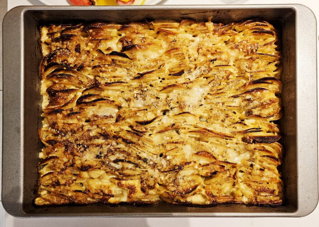 Potatoes two ways: sliced as a Dauphinois and regular roasted