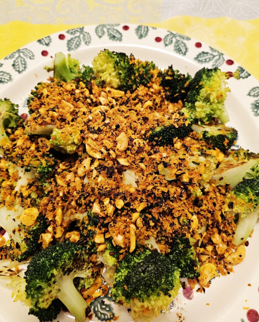 Here are the side dishes we had with our main courses, and the desserts we had for some of the dinners. Most of the vegetables are ‘standards’ i.e. we make them every year. One variation on the regular griddled broccoli (from Yotam Ottolenghi’s first cookbook) was to top it with a crunchy mix of chopped cashew nuts fried with chilli crisp/ chilli oil and panko breadcrumbs. This was inspired by a NY Times Cooking recipe and it was a total success.