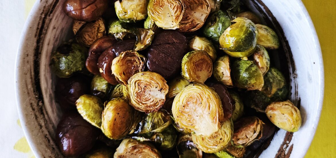 Brussels sprouts two ways: roasted with chestnuts and sliced raw with parmesan and toasted walnuts (from Josh McFadden’s Six Seasons with Vegetables, see an online recipe here)