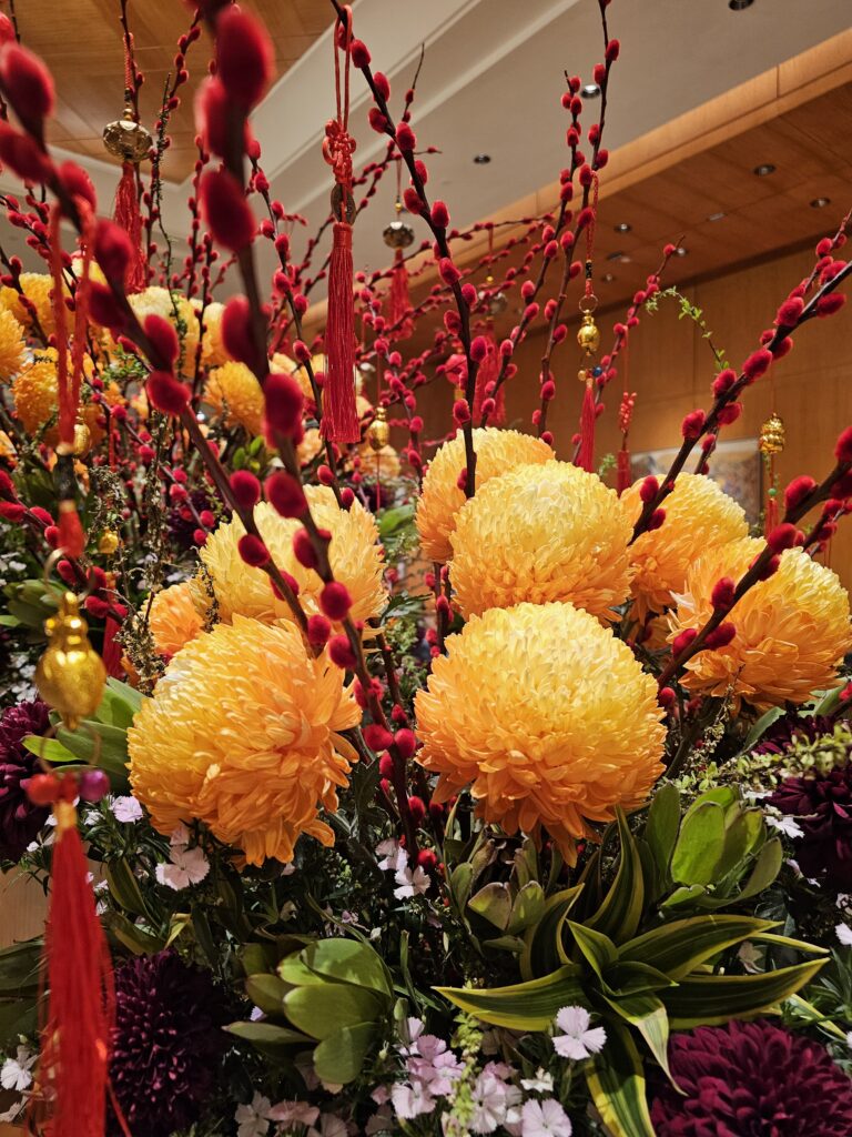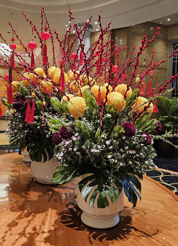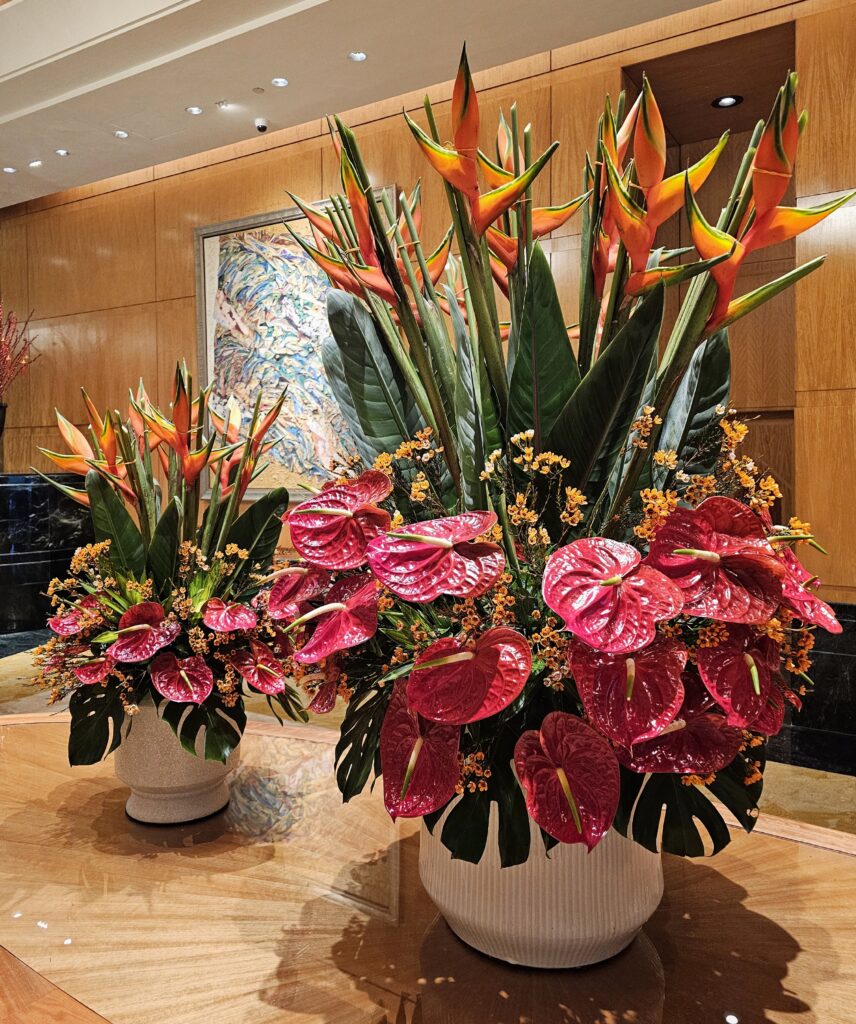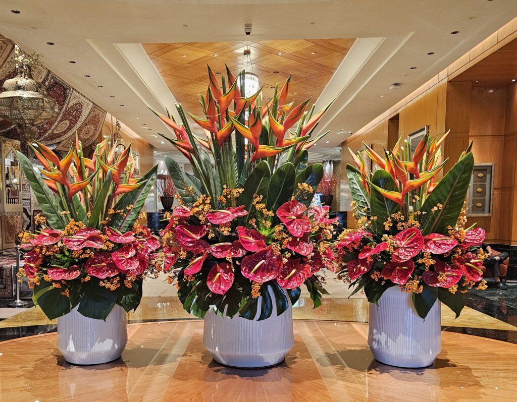 Seasonal flowers in the foyer of the Mandarin Oriental Hotel