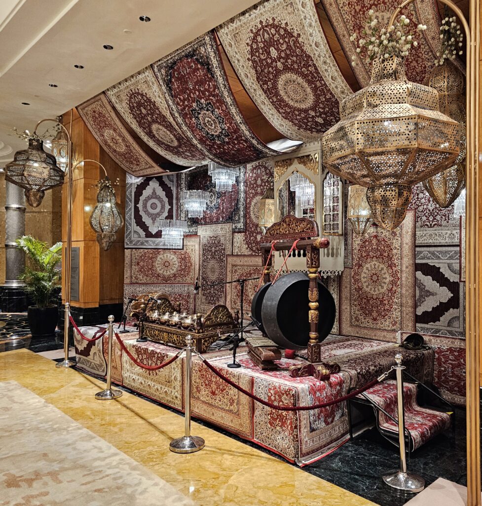 The start of the Hari Raya decorations/ Gamelan stand at the MO Hotel