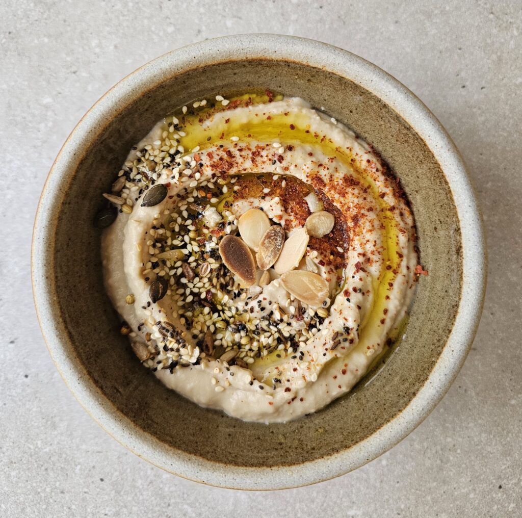To start, a Butterbean and Miso Hummus with crackers, olives, sesame grissini and a Wild Garlic Tarte Soleil