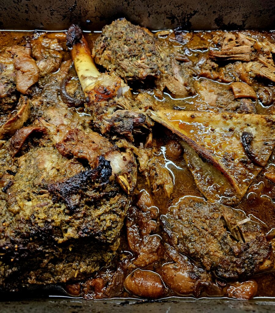 I thought of the Bible verse above as I read the instructions for last night’s dinner centrepiece: Slow-cooked Lamb Shoulder with Fig and Pistachio Salsa from the Ottolenghi oeuvre. It starts with a 2 kg shoulder of lamb. The cook is instructed to ‘Pat dry the lamb and pierce the flesh all over using a small, sharp knife (about 10–12 times)’.