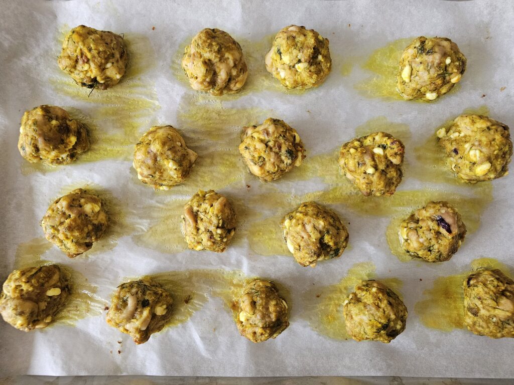 For the main course I adapted the Lemony Chicken-Feta Meatball Soup With Spinach, also from NY Times. What started me on this recipe was an article I read about oats when making my Granola Number 1.